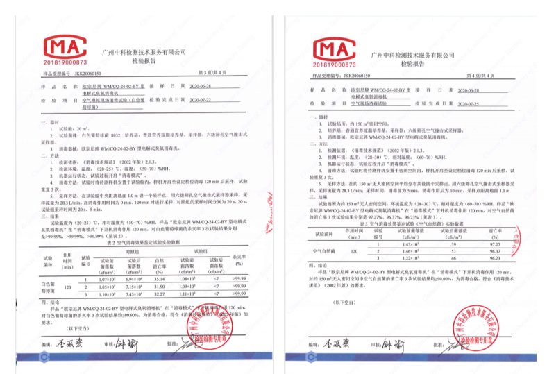 | 白葡菌/大腸桿菌殺滅率99.99% 甲醛、TVOC下降率92% 硫化氫下降率96% 臭氧擴散消殺,全方位無死角 |